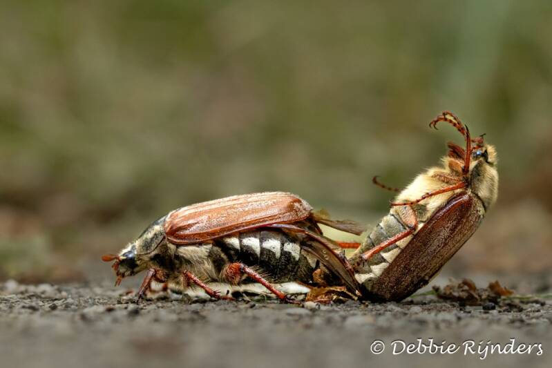Meikever voorplanting. Vrouw trekt man